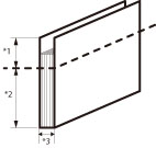Causa 2 | La larghezza dell'opuscolo è maggiore di 221 mm quando si rifila senza il modo Brossura. ![]() *1 Limite superiore larghezza opuscolo: 221 mm *2 Spessore del documento principale |
