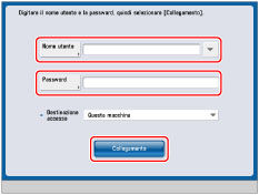 Per maggiori informazioni sui servizi di accesso, vedere "Descrizione dei servizi di accesso". Se non è stato impostato un servizio di accesso, la schermata Accedi non verrà visualizzata. |