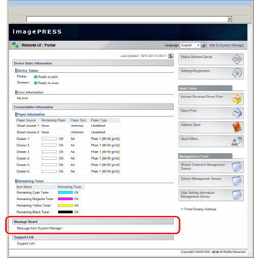 Il Pannello dati è una funzione utilizzata dall'amministratore per trasmettere messaggi agli utenti della macchina visualizzandoli nella IU remota o sul pannello digitale. Le impostazioni del Pannello dati e la creazione dei messaggi vengono effettuate dalla IU remota.