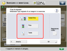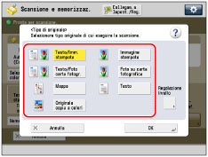 Il tipo di originale può essere selezionato manualmente in base al tipo di immagine.
