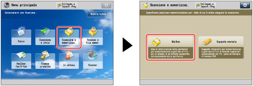 → [Scansione e memorizzaz.] → [Mailbox].