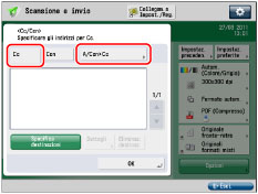 → [Scansione e invio] → [Cc Ccn].