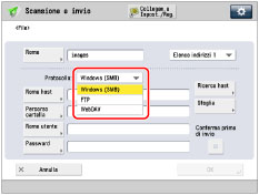 Per maggiori informazioni sui protocolli disponibili, vedere "Specifica di un file server con la tastiera". |