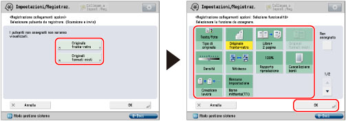 Premere un tasto di selezione veloce → selezionare l'impostazione da registrare nel tasto → premere [OK].