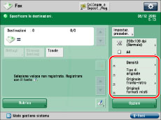 Premere [Impostazioni funzione] → [Invio] → [Impostazioni fax].