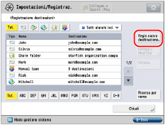 Premere [Impostazione destinazione] → [Registrazione destinazioni].