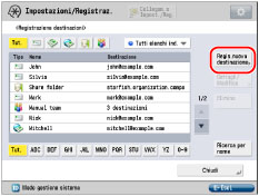 Se non si devono inviare documenti tramite server e l'indirizzo IP del destinatario non è registrato con un server DNS, immettere il nome di dominio nel seguente formato: (utente)@(indirizzo IP del destinatario). |