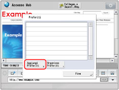 È possibile aggiungere a Preferiti le pagine Web visualizzate di frequente. Le pagine Web registrate nei Preferiti vengono visualizzate come pulsanti nella schermata Menu principale. Aggiungendo una pagina web ai Preferiti, è possibile accedere facilmente alla pagina web.