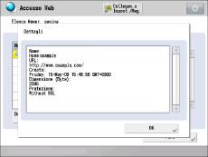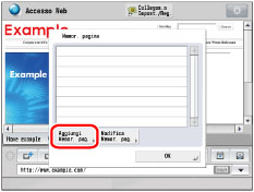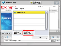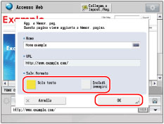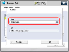 Vengono visualizzati automaticamente il nome e l'URL. È possibile cambiare il nome e l'URL. Se si cambia l'URL, i contenuti della schermata salvata non cambiano. La schermata correntemente visualizzata viene salvata come memoria di pagina. |
