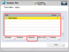 Selezionare la memoria di pagina da eliminare → premere [Cancella].