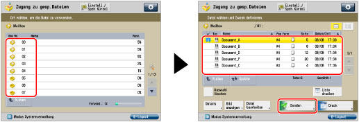 Sie können höchstens 32 in derselben Mailbox gespeicherte Dateien auswählen und auf einmal senden. Es können höchstens 999 Seiten auf einmal gesendet werden. |
