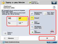 Nähere Informationen zu Dateiformaten finden Sie im Abschnitt "Einstellen des Dateiformats". |