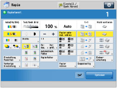 11 | [Optionen] Berühren Sie diese Taste, um weitere Einstellungen zu definieren. Sie können eine Reihe von Kopierfunktionen konfigurieren. |