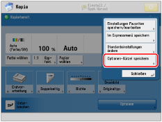 Sie können Kürzel für häufig verwendete Funktionen in [Optionen] erstellen. Sie können auch Kürzel zu [Einstell. Favoriten] erstellen. Weitere Informationen zu Favoriteneinstellungen finden Sie unter