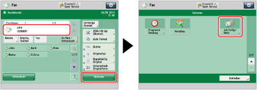 Wählen Sie den Empfänger → Berühren Sie nacheinander die Tasten [Optionen] → [Job-fertig-Notiz].