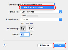 Wählen Sie unter [Einstellungen] die Option [Als Standard sichern] aus → Klicken Sie auf [OK].