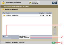 2 | [Revisar info. dispos. memoria] Se pulsa para consultar los detalles de los dispositivos de memoria. |