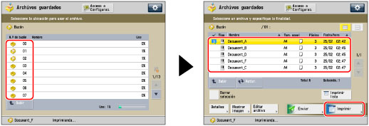Seleccione el buzón que desee → seleccione el archivo pertinente → pulse [Imprimir].
