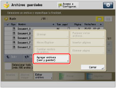 Seleccione el buzón que desee → seleccione los archivos pertinentes en el orden con el que va a fusionarlos → pulse [Editar archivo].