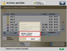 Seleccione el dispositivo de memoria que desee → seleccione el directorio donde desee guardar el archivo → pulse [Editar archivo].