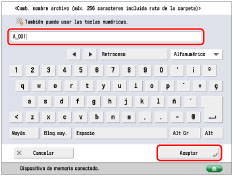 Introduzca un nombre de archivo → pulse [Aceptar].