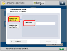 Para abrir un archivo PDF cifrado, pulse [Contraseña de cifrado] → [Contraseña] → introduzca la contraseña.