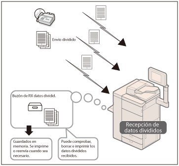No se pueden guardar más archivos en el Buzón de fax/I-fax en los casos descritos a continuación. Estos valores varían en función del espacio libre que quede en el disco duro. Cuando se ha guardado en el buzón y el buzón de fax/I-fax un total de 1.500 archivos o imágenes Cuando se ha guardado en el buzón y el buzón de fax/I-fax un total de 6.000 páginas de archivos o imágenes Cuando la memoria disponible sea insuficiente |