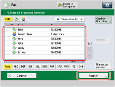 (teclas numéricas). Si pulsa [Direcciones sin número de acceso], aparecen los destinos que no se gestionan con un número de acceso.NOTA |