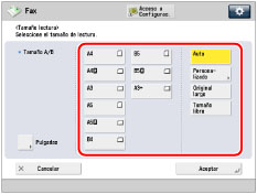 Puede especificar manualmente un tamaño de lectura al leer originales que no pueden detectarse con [Auto]. También puede guardar el tamaño de lectura especificado.