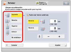 Si introduce un valor distinto de 0, puede cambiar entre anchuras de margen positivas y negativas pulsando [±].