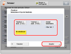 Si se seleccionan varios intervalos de páginas y las opciones de cada intervalo de páginas son diferentes, se mostrará [Variado] para [Tamaño papel de impresión], y [Cada partición] o [Aplicar opciones de cada partición] para otras opciones. |