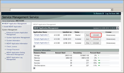 Si para el estado de una licencia de aplicación aparece <Not Installed>, se puede desinstalar la aplicación. Si para el estado de la licencia de aplicación aparece un mensaje distinto de <Not Installed>, se puede desinstalar la aplicación después de haber desactivado y eliminado el archivo de licencia. (Consulte "Gestionar las licencias de las aplicaciones".) |