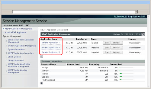 Haga clic en el nombre de la aplicación para descargar o eliminar el archivo de licencia.