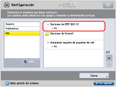 Pulse [Preferencias] → [Red] → [Opciones de IEEE 802.1X].