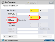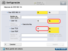 Si establece <Usar TLS> en 'Sí', no podrá establecer <Usar TTLS> o <Usar PEAP>. |