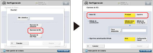 Pulse [Opciones de IKE] → seleccione el modo que se utilizará para IKE fase 1.
