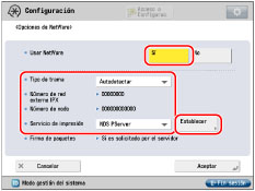 Si [Opciones de NetWare] no aparece, consulte a su distribuidor local Canon autorizado. |