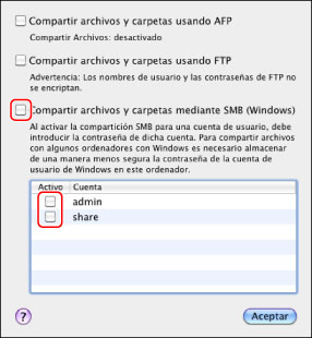 Establezca el usuario y la contraseña para acceder a la carpeta compartida.