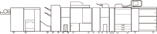 Las unidades Cizalla de Cuadernillos de Doble Hoja A1, Cizalla de Cuadernillos F1, Unidad de Acabado de Cuadernillos W1 PRO, Unidad Plegadora de Papel J1, Encuadernadora Perfect Binder-E1, Taladradora MultiFuncional Profesional A1, Unidad de Inserción N1, Unidad Lectora Color Dúplex K1, Depósito de Papel Multibandeja C1 y Panel de Control Vertical G1 están instaladas.