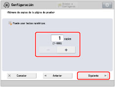 Introduzca el número de páginas de prueba que desee hacer → pulse [Siguiente].