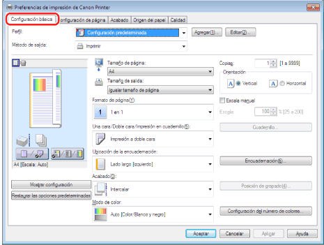 También puede configurar esta función en la ficha [Calidad]. La pantalla puede variar según el sistema operativo y también en función del tipo y la versión del controlador de impresora. |
