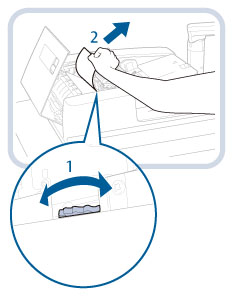 | 1. Tire de la palanca y abra la tapa del alimentador. |