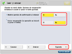 Especifique las opciones de recuperación para que se guarde el botón → pulse [Siguiente].