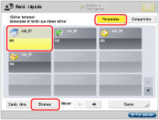 El administrador puede eliminar la información del botón iniciando la sesión en la página de servicio de gestión de información de configuración del usuario (User Setting Information Management Service) desde el navegador web. (Consulte "Gestión de información de opciones de usuario (Servicio de gestión de información de opciones de usuario)".) |