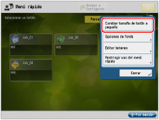 Puede cambiar el aspecto de la pantalla Menú rápido según sus preferencias. Esta sección describe cómo se puede cambiar el tamaño de los botones de grande a pequeño.