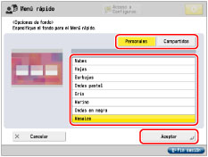 Seleccione el botón para el que desea especificar el fondo → seleccione las opciones de fondo → pulse [Aceptar].