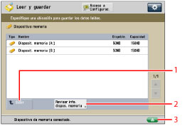 2 | [Revisar info. dispos. memoria] Se pulsa para consultar los detalles de los dispositivos de memoria. |