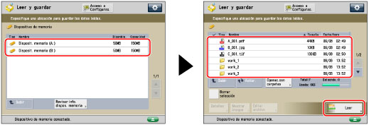 → [Leer y guardar] → [Dispositivo de memoria].