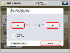 Pulse [-] y [+] para ajustar la densidad del fondo → pulse [Aceptar].