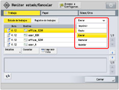 Seleccione el trabajo que desee cancelar → pulse [Cancelar].